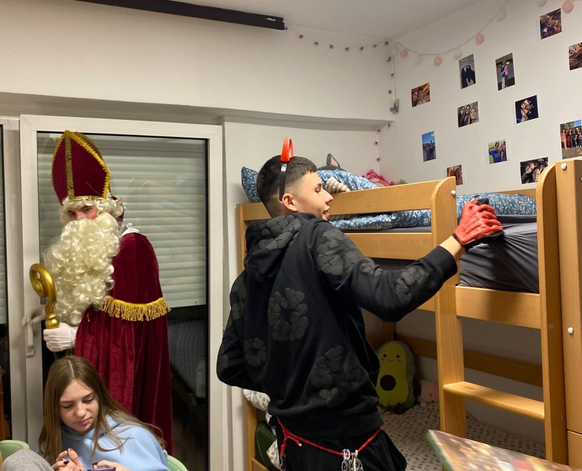 Blagdan Svetog Nikole obilježen je u našem Domu u četvrtak 4.12.2025. prije odlaska na večernji odmor. Veseli Nikola i krampusići podijelili su učenicima i studentima adventske kalendare, bombone i šibe. Sve to je nadgledala i organizirala odgajateljica Tajana koja je i nositeljica ove aktivnosti. Ugođaj je bio pravi blagdanski i svi su bili oduševljeni. Hvala našem bivšem učeniku Dorijanu Dravincu, koji je i ove godine, uz sve svoje obveze došao u Dom i bio sv. Nikola.